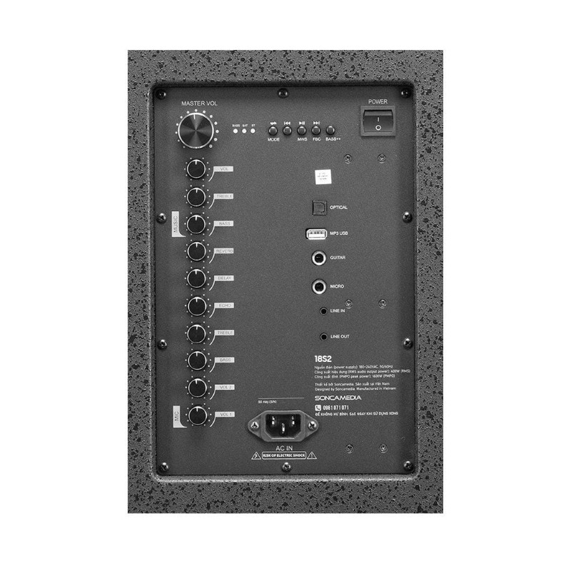 Bên cạnh đó, loa 18S2 cũng có đầy đủ các cổng kết nối thông dụng, đáp ứng nhu cầu sử dụng đa dạng cho nghe nhạc, ca hát, biểu diễn nhạc cụ,...