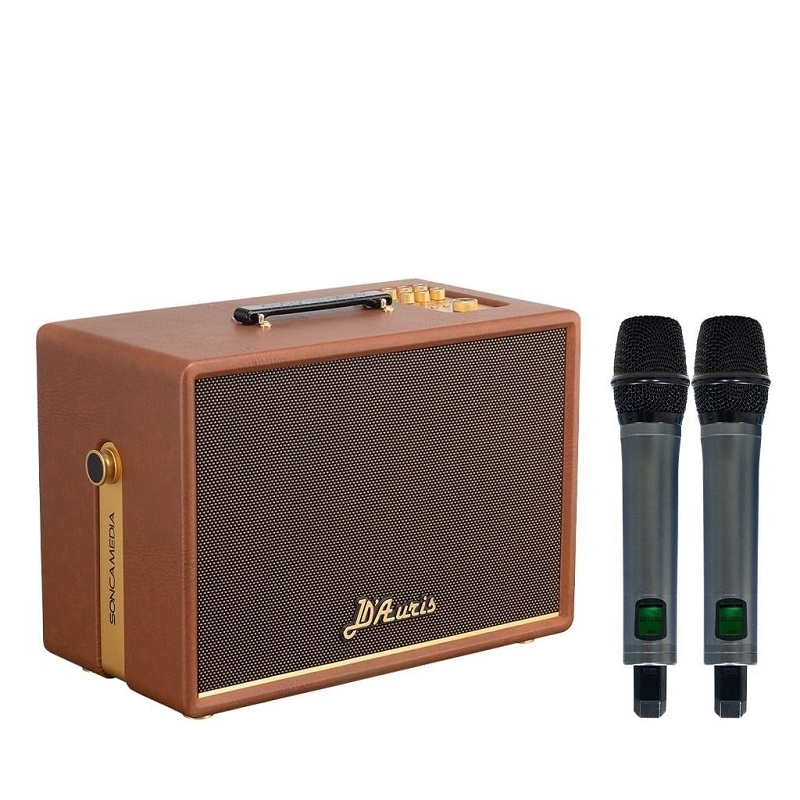 Loa Soncamedia D’Auris 300 đi kèm 2 micro không dây UHF vỏ nhôm cao cấp, cho cảm giác cầm chắc tay, nhẹ hơi và dễ hát. Micro bắt tiếng tốt, cho giọng ca rõ ràng, sạch sẽ và ổn định khi kết hợp cùng hệ thống DSP và chống hú di tần của loa.