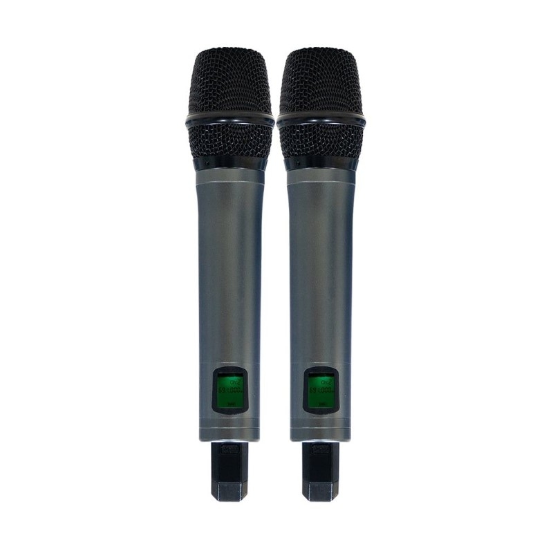 - Phụ kiện: 2 micro không dây UHF, dây nguồn AC, sách hướng dẫn, phiếu bảo hành.