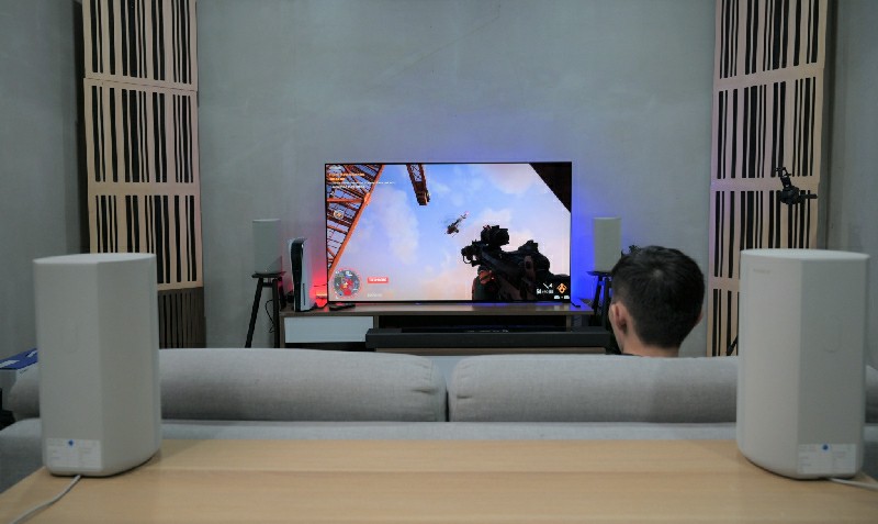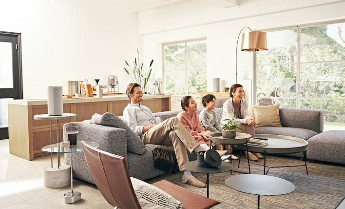Phạm vi nghe cực rộng lan đến mọi nơi trong phòng khách để gia đình và bạn bè của bạn đều có cùng trải nghiệm âm thanh. Phạm vi nghe không bị giới hạn ở phía trước TV mà bao trùm không gian rộng hơn nhiều.
