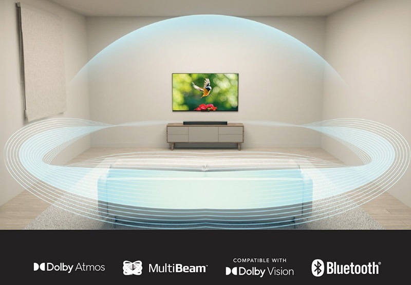 MultiBeam giả lập hiệu ứng âm thanh vòm bằng cách phản xạ âm thanh ra các bức tường trong phòng, tạo ra một không gian âm thanh 3D mà không cần thêm loa vệ tinh phía sau. Điều này giúp JBL Bar 300MK2 mang đến trải nghiệm âm thanh vòm ảo ấn tượng chỉ với một chiếc soundbar duy nhất.
