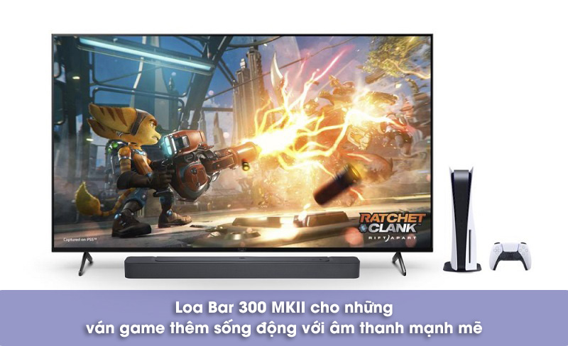Với game, loa thanh Bar 300MK2 cũng giúp những trận chiến trở nên hấp dẫn và cuốn hút hơn. Âm thanh vòm bao quanh giúp mọi hiệu ứng trở nên sống động và chân thực hơn.