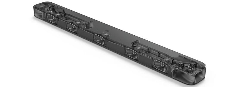 Thay vào đó, loa sử dụng các củ loa được bố trí đặc biệt và các thuật toán xử lý tín hiệu tiên tiến để phản xạ âm thanh lên trần nhà và các bức tường, mô phỏng hiệu ứng âm thanh đến từ mọi hướng, kể cả từ trên cao.