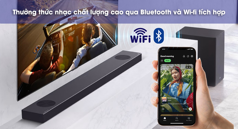 Với Bluetooth 5.0, việc truyền phát nhạc từ điện thoại hoặc máy tính bảng tới loa thanh SN9Y trở nên nhanh chóng và dễ dàng. Đối với những người yêu âm nhạc chất lượng cao, Wi-fi là lựa chọn hoàn hảo. Loa còn tương thích với Chromecast, giúp việc stream nhạc trực tuyến trở nên đơn giản hơn bao giờ hết.