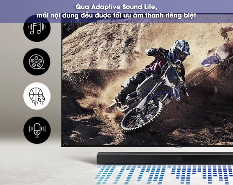 Chế độ Game Mode đắm chìm trải nghiệm chơi game không gián đoạn với những hiệu ứng âm thanh hấp dẫn. Ngoài ra Samsung còn trang bị thêm các chức năng như tự động tối ưu âm thanh cho từng cảnh game, công nghệ khử nhiễu xuyên âm loại bỏ mọi âm thanh gây xao nhãng.