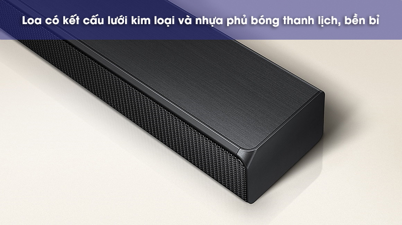 Loa Samsung HW-A550 được cấu tạo từ những nguyên vật liệu chất lượng. Mặt trước của loa là lưới kim loại kim cương màu đen, mặt trên bao phủ bởi nhựa nhưng có xử lý bóng nhẹ. Tổng thể loa có sự sang trọng và bền bỉ, các củ loa đều được bảo vệ hiệu quả.