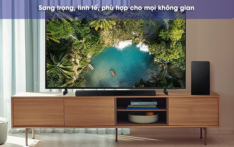 Tone màu đen thanh lịch và cạnh loa được vát phẳng tạo điểm nhấn tinh tế. Tích hợp HW-A550 trong phòng, bạn sẽ có một không gian giải trí vừa nghe hay, vừa đẹp mắt.