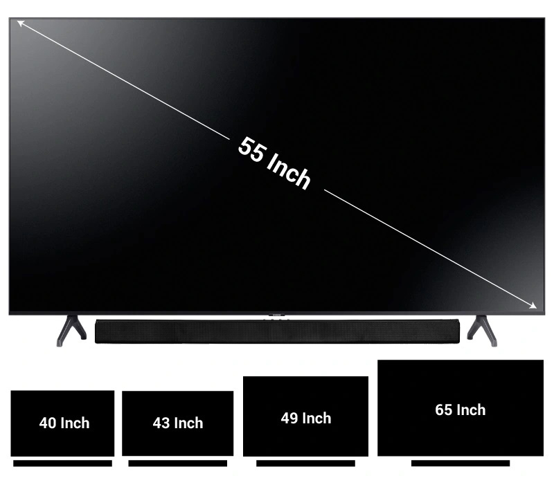 Với chiều dài 860mm, khi bố trí cùng TV có kích thước từ 40 inch trở lên sẽ cho hiệu quả thẩm mỹ tốt nhất. Bề dày chỉ 55m nên bạn không cần lo lắng loa sẽ che mất mắt hồng ngoại trên TV.