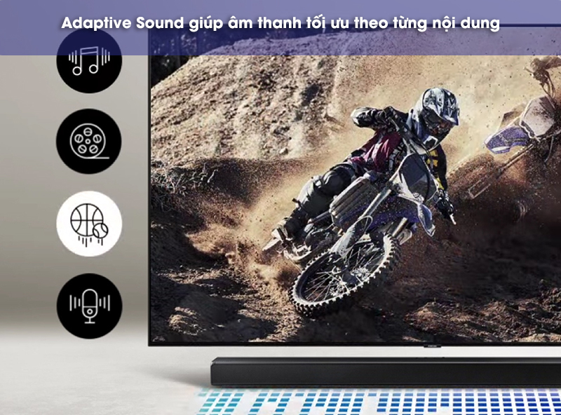 Công nghệ Adaptive Sound Lite giúp tối ưu âm thanh theo từng nội dung. Với trang bị này, loa HW-A650 sẽ tự động điều chỉnh âm thanh theo nội dung được phát trên TV.