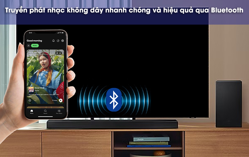 Với các thiết bị thông minh, có thể sử dụng Bluetooth để kết nối dễ dàng, nhanh gọn. Khả năng truyền phát nhạc linh hoạt và giới hạn khoảng cách tương đối xa. Tuy vậy, để đảm bảo kết nối hiệu quả, bạn nên duy trì trong vòng 10 m.