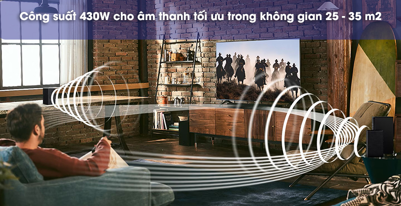 Tổng công suất của hệ thống đạt 430W, trong đó riêng sub trầm đã lên tới 250W. Do đó, âm thanh dễ dàng bao phủ ngập tràn không gian từ 25 - 35 m2 với chất lượng tốt nhất.