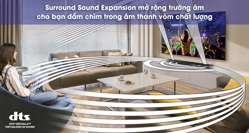 Thêm công nghệ Surround Sound Expansion giúp tái hiện âm thanh vòm Dolby Digital 5.1 chân thực. Bạn có thể cảm nhận rõ từng thanh âm được bao trùm xung quanh mình mà không cần dùng đến loa vệ tinh bên ngoài.