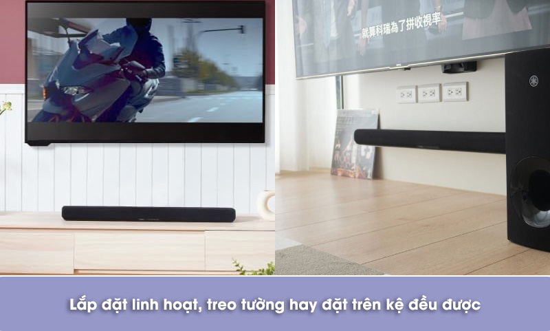 Còn loa sub kết nối không dây với soundbar nên có thể linh hoạt vị trí đặt dưới sàn hoặc trên bàn, tủ đều được. Tuy nhiên nên đặt ở vị trí thông thoáng, tránh vật cản phía trước loa làm ảnh hưởng đến chất lượng âm thanh.