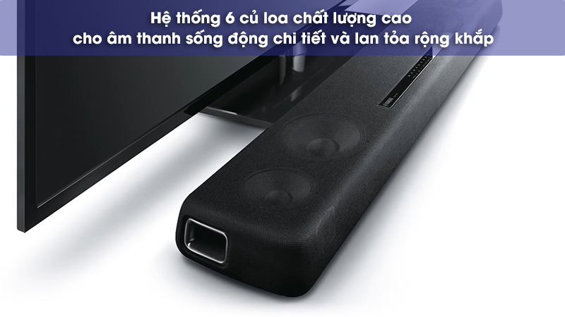 Đồng thời với thiết kế 2 củ loa subwoofer công suất 60W, YAS-107 giúp thể hiện dải bass sâu lắng, gọn gàng. Trong trường hợp bạn là một tín đồ của các dòng nhạc mạnh, nhạc EDM, Nonstop,... YAS-107 có thể kết nối thêm subwoofer với cổng Sub out được tích hợp.