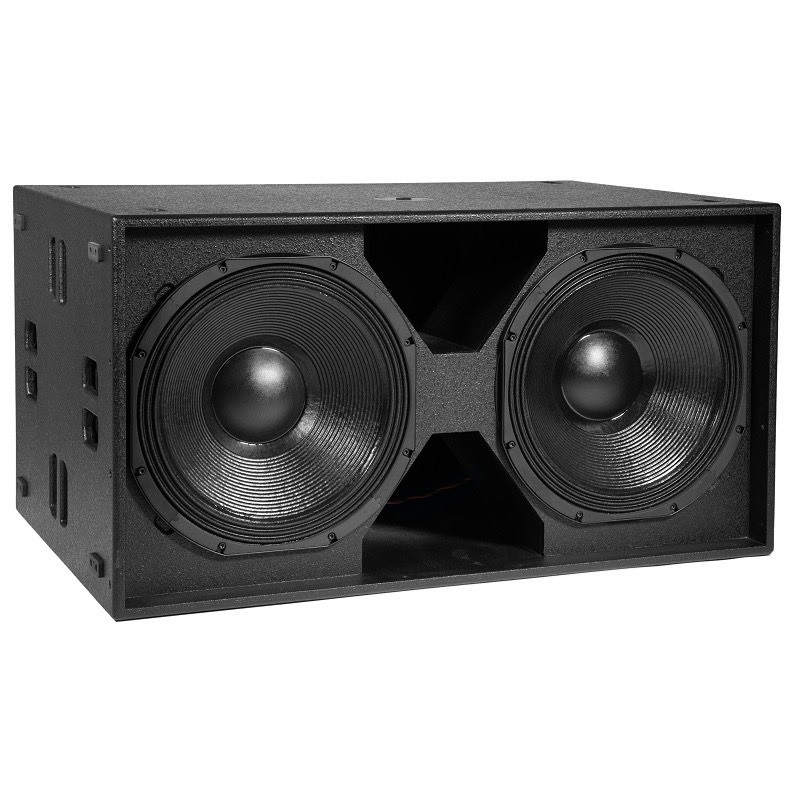Hai củ loa bass 18SW1200-8 với kích thước 457mm, mỗi củ loa đều có cuộn dây âm thanh 4 inch long throw và khung nhôm đúc, cho phép xử lý công suất cực lớn với độ bền bỉ cao.