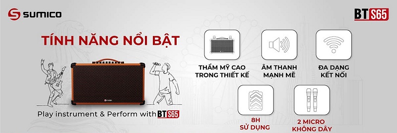 Sumico là thương hiệu chuyên sản xuất các thiết bị âm thanh đến từ Việt Nam. Nối tiếp thành công của những sản phẩm ra đời trước đó, hãng tiếp tục cho ra mắt loa Sumico BT-S65. Với thiết kế có tính di động cao, đáp ứng mọi nhu cầu ca hát và nghe nhạc chất lượng cao. Chinh phục khán giả bởi thiết kế nhỏ gọn nhưng lại có âm thanh mạnh mẽ, đầy uy lực.