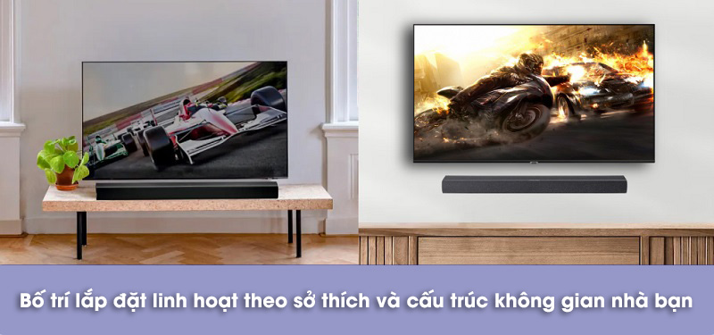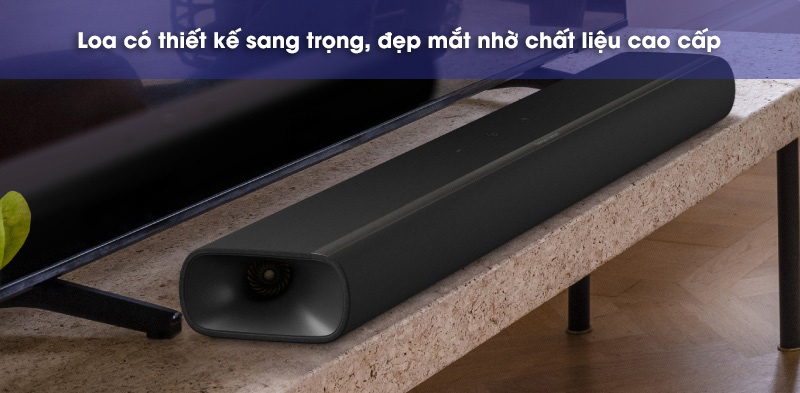 Kích thước của loa khá nhỏ gọn, thích hợp bày trí với các mẫu TV từ 55 inch trở lên là đẹp mắt nhất. Bề dày của loa khá mỏng, vậy nên có thể thoải mái đặt trước TV mà không lo mắt hồng ngoại bị che mất.
