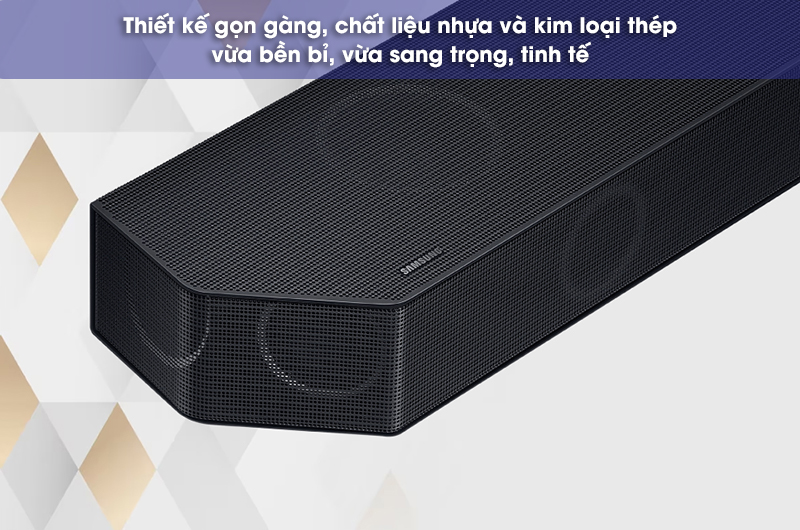 Để nâng cao tuổi thọ cho loa, toàn bộ hệ thống HW-Q990C đều được gia công từ nhựa và lưới kim loại. Điều này giúp loa đồng bộ thẩm mỹ cao cấp lại bền bỉ, ít bám bụi và dễ vệ sinh.