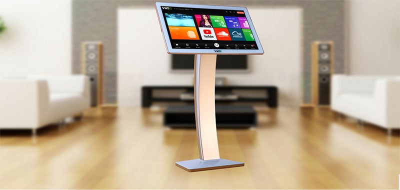Màn hình cảm ứng VietK 21 Inch nổi bật với màu vàng Gold sang trọng với thiết kế chân cong bằng kim loại sáng bóng chống oxi hóa với môi trường. Nổi bật trên màn hình là chữ Logo VietK trên viền trắng. Giao diện mới mẻ thân thiện đơn giản rất dễ sử dụng ngay cả khi mới dùng lần đầu cũng có thể chọn được bài hát mình yêu thích