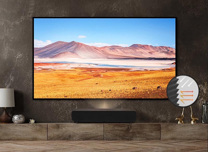 Kết hợp với độ sáng 2400 (LED Lumens) và độ tương phản 4 000 000: 1, siêu phẩm máy chiếu siêu gần hứa hẹn đem đến hình ảnh rõ nét, ấn tượng hơn.
