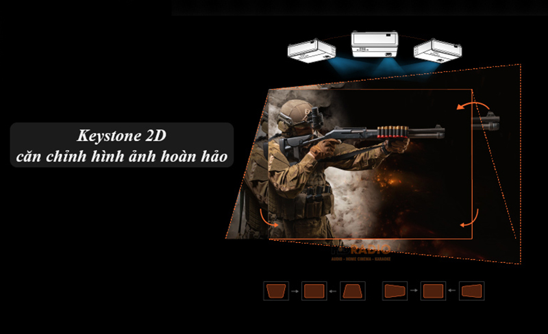 Máy chiếu BenQ TK700 có Keystone 2D loại bỏ các hiệu ứng hình thang khi đặt máy chiếu từ các vị trí khác nhau trong phòng, cho hình ảnh ổn đinh, hoàn hảo.