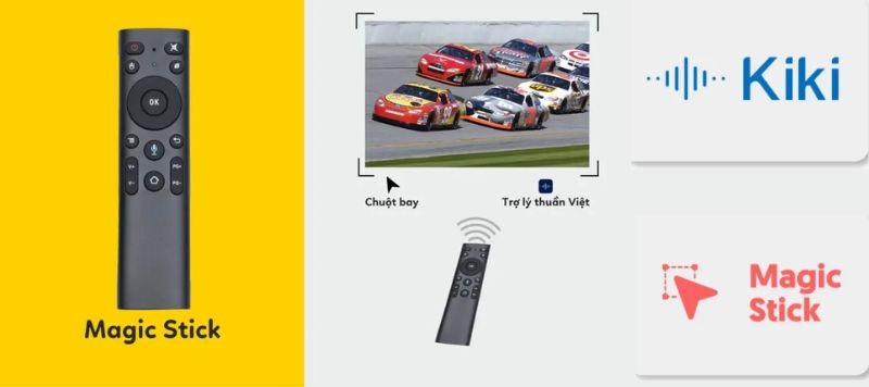Điều khiển đặc biệt đi kèm máy chiếu, được tích hợp chuột bay ảo cùng tính năng Google Assistant, giúp việc thao tác trở nên thuận tiện hơn.