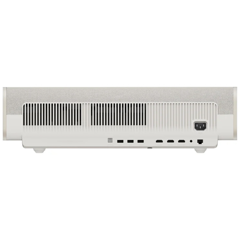 Máy có kích thước 144 × 510 × 270 mm và trọng lượng khoảng 9 kg, đặt trên kệ TV hoặc tủ chuyên dụng mà không chiếm quá nhiều diện tích. Khả năng chiếu siêu gần cũng giúp việc bố trí trở nên linh hoạt hơn, chỉ cần đặt sát tường là đã có thể tạo ra màn hình lớn.