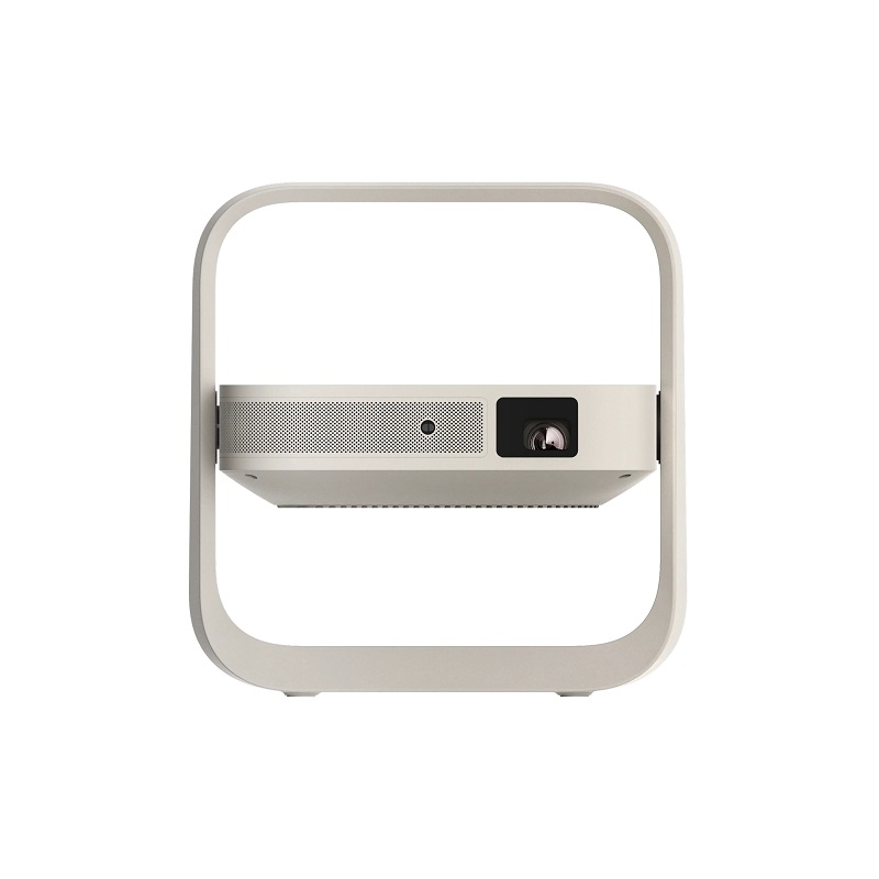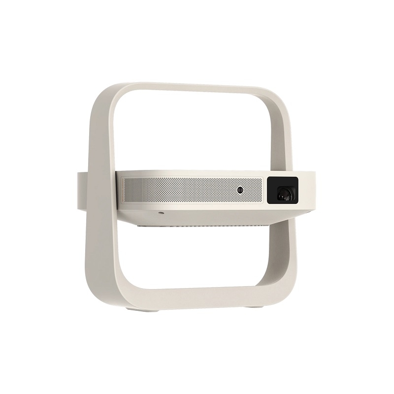Đặc biệt, chân đế tích hợp có thể lật, cho phép điều chỉnh góc chiếu lên tới 150°. Nhờ vậy, người dùng có thể linh hoạt đặt máy trên bàn, kệ hoặc thậm chí chiếu lên trần nhà mà không cần phụ kiện hỗ trợ.