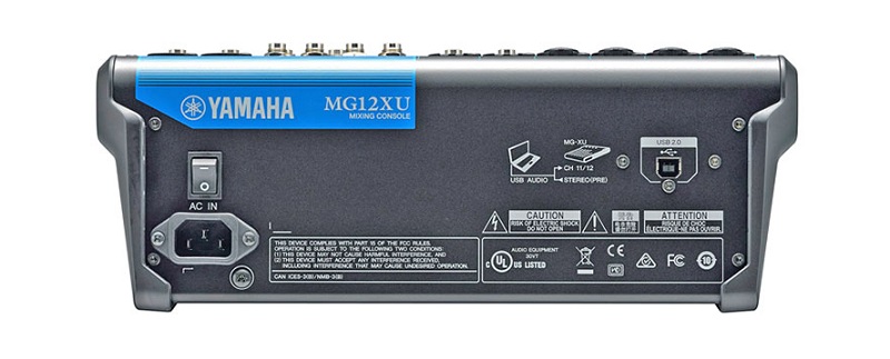 Mixer MG12XU được trang bị các cổng kết nối XLR chất lượng cao của Neutrik trên các channel mono Mic/ Line và trên các channel stereo. Mỗi input mono có một combo jack, cho phép sử dụng cả tín hiệu cho Mic và Line. 2 input stereo được trang bị cổng XLR dùng cho tín hiệu Mic và 2 jack 6 ly dùng cho tín hiệu Line và dùng cho cả mono và stereo. Chức năng của 2 channel stereo còn lại thì tuỳ thuộc vào từng model.