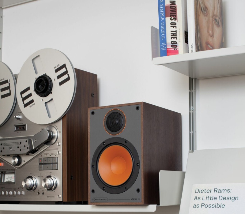 Loa Monitor 100 kiểu dáng nhỏ gọn với kích thước chiều cao 31 cm x bề ngang 20 cm x chiều sâu 29,8 cm. Loa dễ dàng bài trí cho mọi không gian giải trí của bạn là phòng khách nhỏ, phòng ngủ, phòng làm việc... tùy theo mục đích có thể đặt lên kệ sách, để bàn hoặc chân loa. Dù đặt ở vị trí nào, Monitor 100 vẫn luôn nổi bật và lôi cuốn mọi ánh nhìn bởi sắc cam cổ điển sang trọng của màng loa Mid/Bass và đường viền tròn quanh loa Treble. Thùng loa được hãng chọn lựa chế tác từ gỗ MDF cao cấp nhằm triệt rung và giảm thiểu hoàn toàn những cộng hưởng tiêu cực phát sinh trong quá trình loa vận hành. Ngoại trừ mặt trước bao quanh các củ loa con được sơn nhám màu xám nhung thì toàn bộ phần còn lại của thùng loa được phủ veener vân gỗ liền mạch rất khéo léo. Lớp veener vân gỗ này có bề mặt dạng xước dăm thiết kế kháng bụi, chống trầy và chống ẩm.