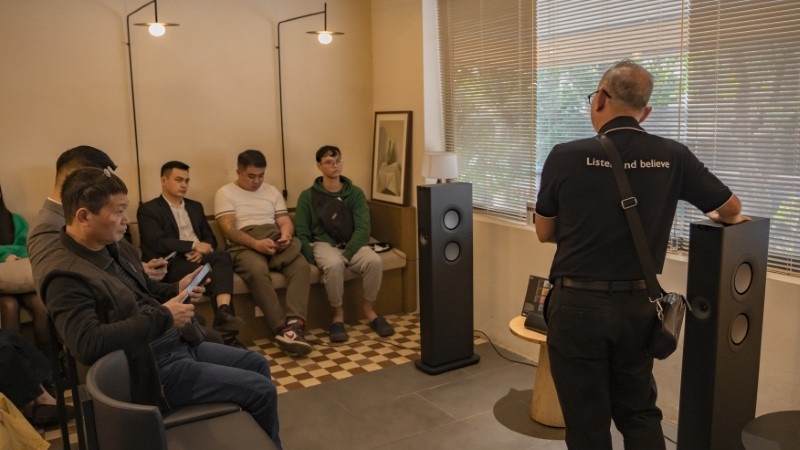 Tại đây, người tham dự trải nghiệm playlist Lofi nhẹ nhàng cho công việc và EDM sôi động cho giải trí, qua đó cảm nhận rõ ưu thế của loa nhỏ gọn: âm thanh chi tiết ở khoảng nghe gần, bố trí linh hoạt và khả năng thích ứng tốt với không gian cá nhân.