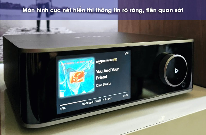 Thiết bị cho phép người dùng dễ dàng truyền phát nhạc với âm thanh 24-bit/192 kHz từ các nền tảng như Spotify, Amazon Music, TIDAL, Qobuz hoặc thư viện của riêng bạn lưu trữ trong USB.