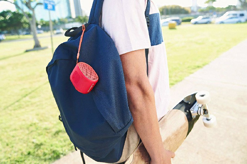 Một ưu điểm đáng chú ý của SRS-XB01 là trọng lượng siêu nhẹ. Sony SRS-XB01 chỉ vỏn vẹn 160 gam, tức là chỉ tương đương với một chiếc Smartphone. Không những thế, Sony còn tặng kèm dây đeo móc vào thân loa. Như vậy, người dùng có thể dễ dàng đem chiếc loa mini này bên mình đi bất cứ đâu.