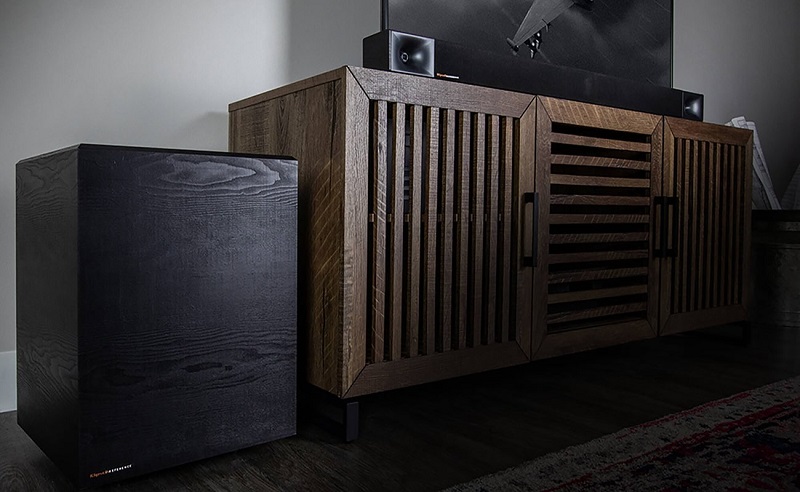 Soundbar Klipsch thường lấy màu đen trầm làm chủ đạo với bề mặt được xử lý để làm nổi bật hoa văn của gỗ tự nhiên.