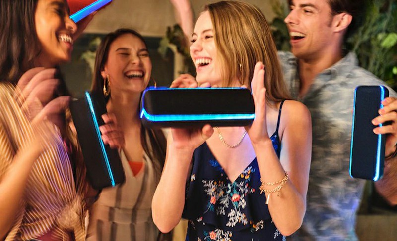 Mang trên mình khá nhiều công nghệ tiện ích như người dùng có thể tinh chỉnh các hiệu ứng thông qua ứng dụng Music Center . Đồng thời với đó là mang tính năng Party Booster , khả năng giả lập tiếng nhạc cụ trực tiếp trên loa , chỉ cần vỗ vào mọi phía trên loa , loa sẽ tự động phát ra những tiếng nhạc cụ mà chúng ta tinh chỉnh ở trên app Music Center để góp phần đem thêm những không khí cũng như không gian cho buổi party, buổi cắm trại , dã ngoại hay là nhâm nhi cốc cafe bên gia đình và bạn bè của chúng ta.