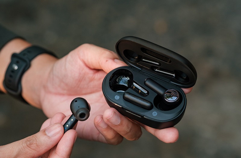 Không chỉ tai nghe mà phần hộp sạc của Quantum TWS cũng được cải tiến mới mẻ hơn khi không còn sự thô ráp mà thay vào đó là những đường nét, đường cong mềm mại, các góc được bo gọn gàng tạo cảm giác chắc tay, khỏe khoắn nhưng vẫn tinh gọn bất ngờ. Phía bên trong, phần kết nối housing, chúng ta sẽ có cơ chế hút bằng nam châm, tiện lợi, giúp bạn có thể dễ dàng cố định chiếc tai nghe của mình.