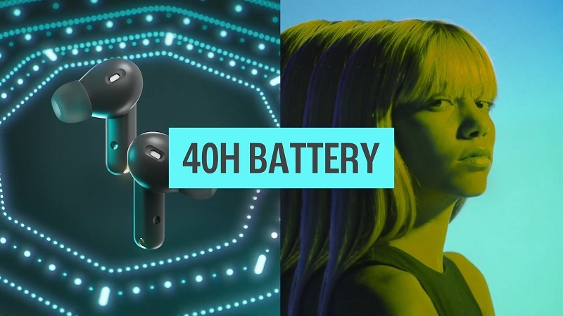 Không dừng lại ở đó, hộp sạc còn cung cấp tối đa thêm 30 giờ. Do đó, chỉ với một lần sạc đầy mất khoảng 2 giờ, bạn đã có thể dùng vô tư trong 40 giờ.