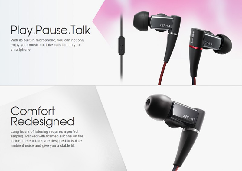 Sony XBA A1 sẽ bao gồm 1 Driver BA và 1 Driver Dynamic với đường kính 9MM, Sony XBA A2 sẽ bao gồm 2 Driver BA và 1 Driver Dynamic HD có đương kính 12MM, Sony XBA A3 sẽ bao gồm 2 Driver BA và 1 Driver Dynamic HD có đường kính 16MM. Trong 3 mã sản phẩm mới này chỉ có XBA A3 có dây dẫn tháo rời được.