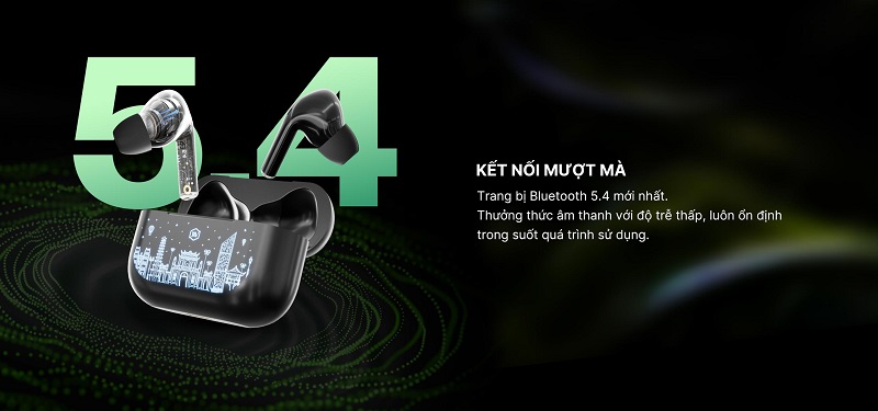 Tai nghe True Wireless Alpha Works Fklex 100 được trang bị công nghệ Bluetooth 5.4 tiên tiến, giúp kết nối nhanh chóng và ổn định với các thiết bị di động, máy tính bảng, laptop chỉ với một cú chạm. Công nghệ này không chỉ giúp cải thiện tốc độ kết nối mà còn giảm thiểu độ trễ âm thanh, mang lại trải nghiệm nghe liền mạch, mượt mà.