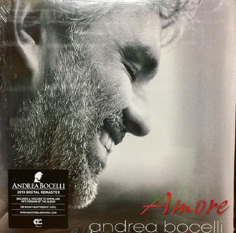 Đĩa than tiếng Anh Andrea Bocelli - Amore được tuyển chọn từ những ca khúc đặc sắc nhất tuyển danh ca người Ý Andrea Bocelli nằm trong album phòng thu thứ 11 của danh ca và sự góp mặt của nhiều nghệ sĩ nổi tiếng như Kenny G, Stevie Wonder, phát hành ngày 31/1/2016 - mùa lễ tình nhân ngọt ngào năm ấy.