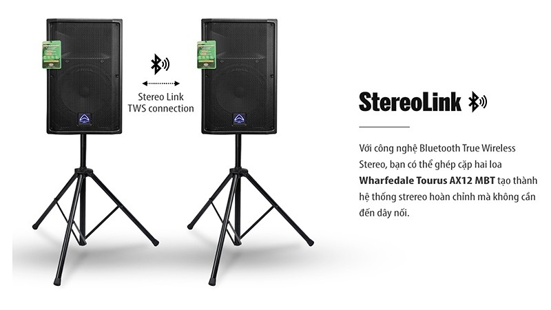 Loa Wharfedale Tourus AX-12MBT cũng có chế độ TWS STEREO LINK. Điều này cho phép hai Loa Wharfedale Tourus AX-12MBT giao tiếp với nhau để tạo ra một cặp âm thanh nổi.