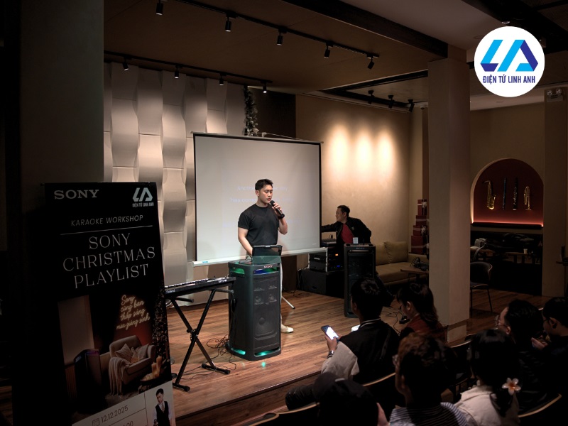 Vừa qua, Điện Tử Linh Anh đã phối hợp cùng Sony Việt Nam tổ chức thành công workshop mùa Giáng Sinh với chủ đề “Rèn giọng - Chill nhạc - Trải nghiệm loa Sony ULT”, thu hút sự quan tâm và tham gia của đông đảo khách mời yêu âm nhạc và công nghệ âm thanh.