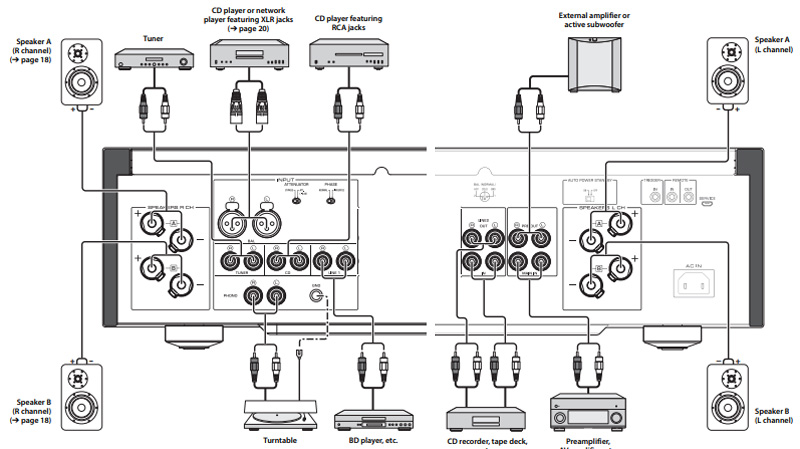 Các bạn có thể kết nối Amply Yamaha A-S2200 với các thiết bị khác dễ dàng theo hình sau: