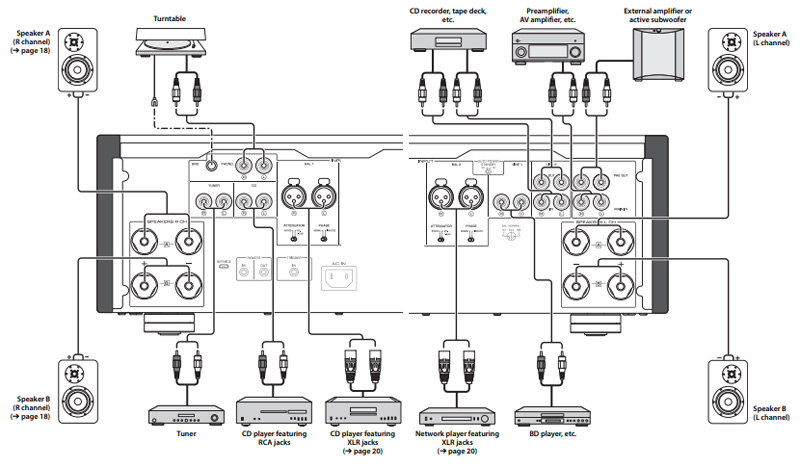 Các bạn có thể kết nối Amply Yamaha A-S3200 với các thiết bị khác dễ dàng theo hình sau