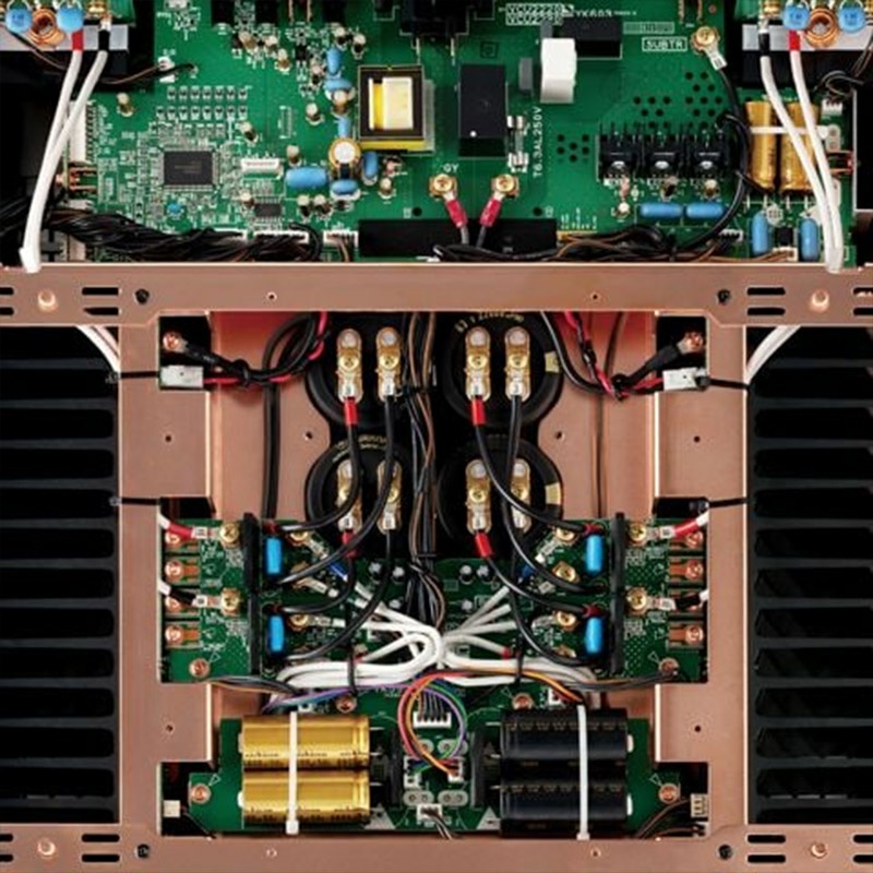 Được công nhận về hiệu suất âm nhạc và sử dụng trong các sản phẩm âm thanh gia đình cao cấp, các tụ điện chất lượng cao đã được chọn, mang đến âm thanh chân thực trên Amply YAMAHA A-S3200, ngoài ra sau một quá trình rèn chuyên sâu, dây loa PC-Triple C có cấu trúc tuyến tính vốn có, cho phép truyền tín hiệu mượt mà hơn để trình bày chính xác hơn bản ghi âm nhạc gốc.