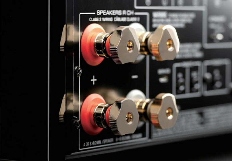 Amply YAMAHA A-S3200 có các đầu nối loa sang trọng được cắt trực tiếp từ đồng thau nguyên chất và đạt được kết nối an toàn cao, dễ dàng cho phép siết chặt dây loa bằng tay người